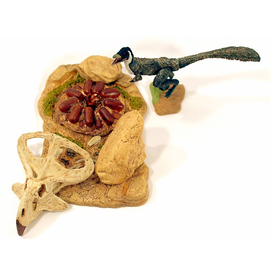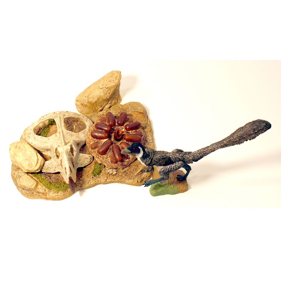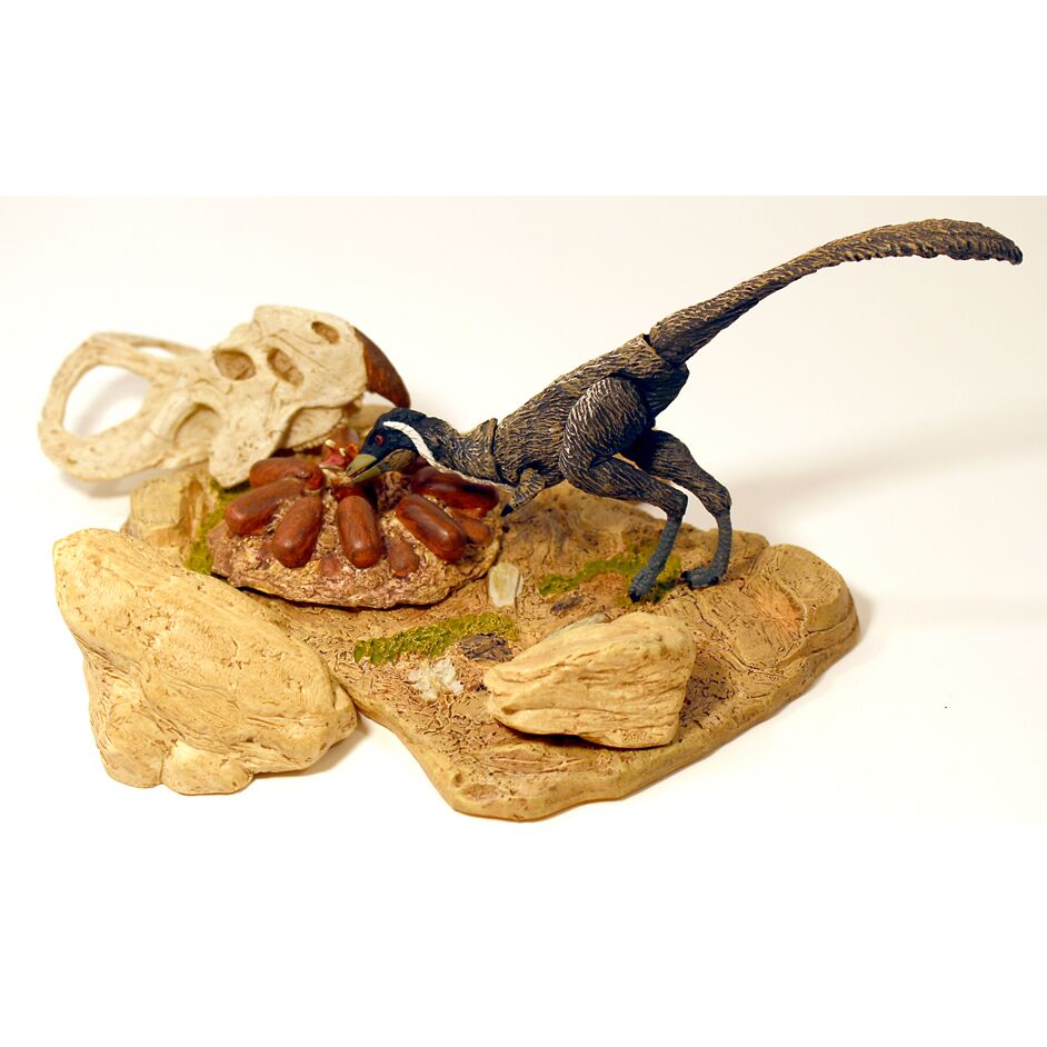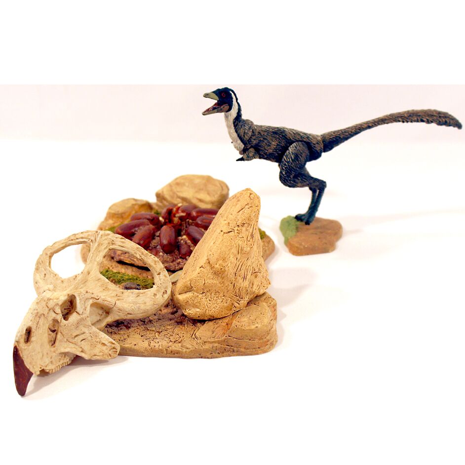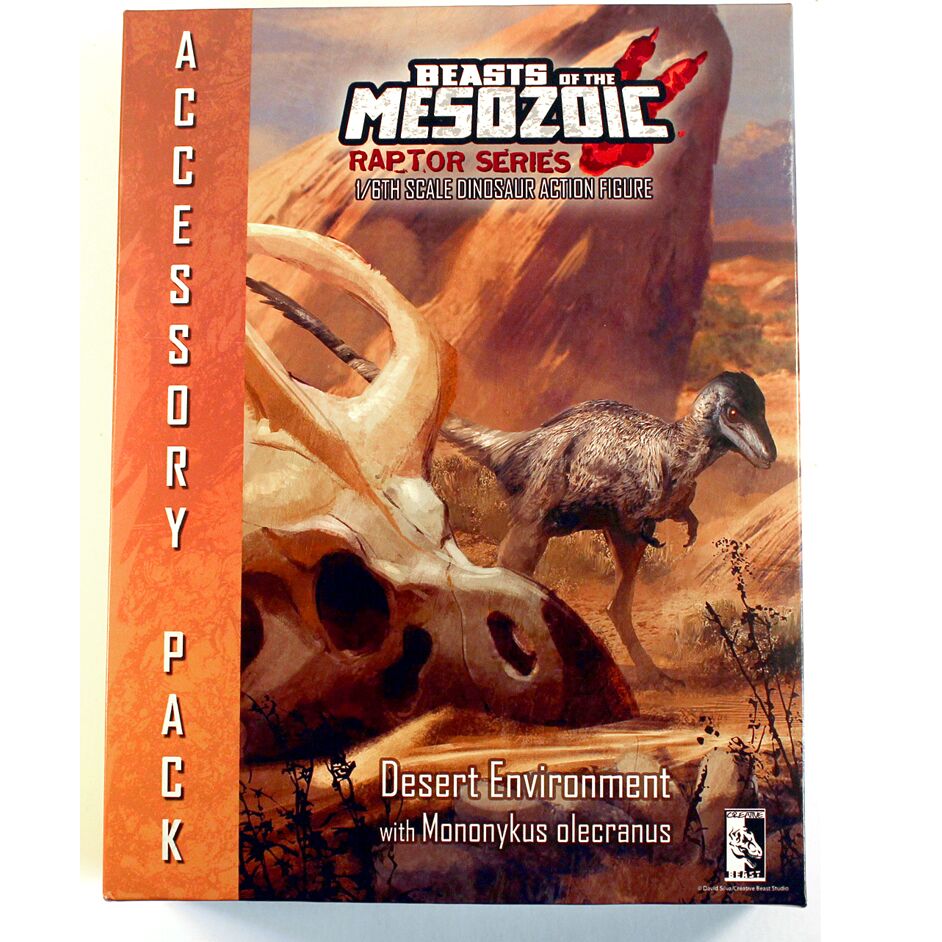 The Beasts of the Mesozoic Deserts environment accessory pack includes a hand-painted Mononykus olecranus dinosaur model with 7 points of articulation and accessories to create a Desert environment diorama. Set comes with small base for model, larger accessory base, numerous accessories including a small posing rod and a large “raptor” jumping rod