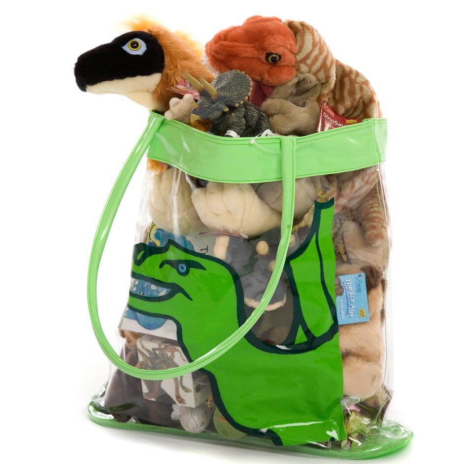 A handy clear plastic dinosaur toy storage holdall and carrier. A practical item to help transport and store their favourite dinosaur toys.
