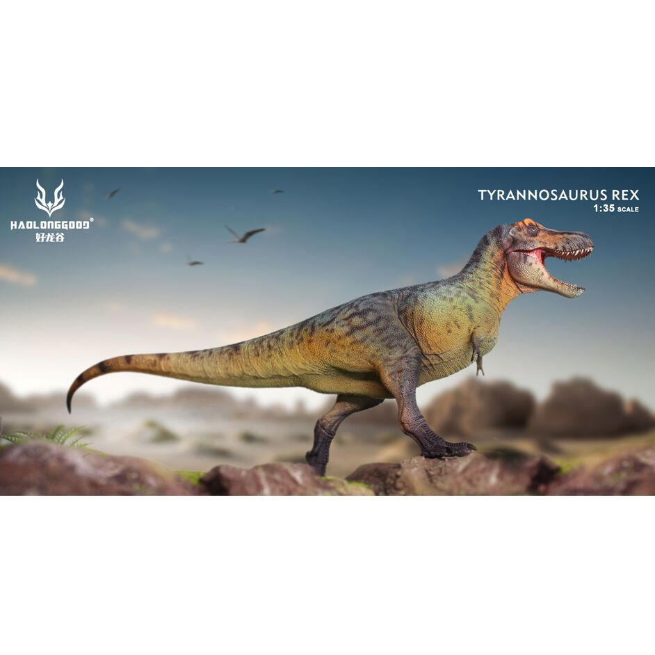 Haolonggood T. rex Lu Jun Yi, the grey Tyrannosaurus rex dinosaur model. A fantastic T. rex in 1:35 scale. Everything Dinosaur supplies the Haolonggood T. rex Lu Jun Yi model with a Tyrannosaurus rex fact sheet.