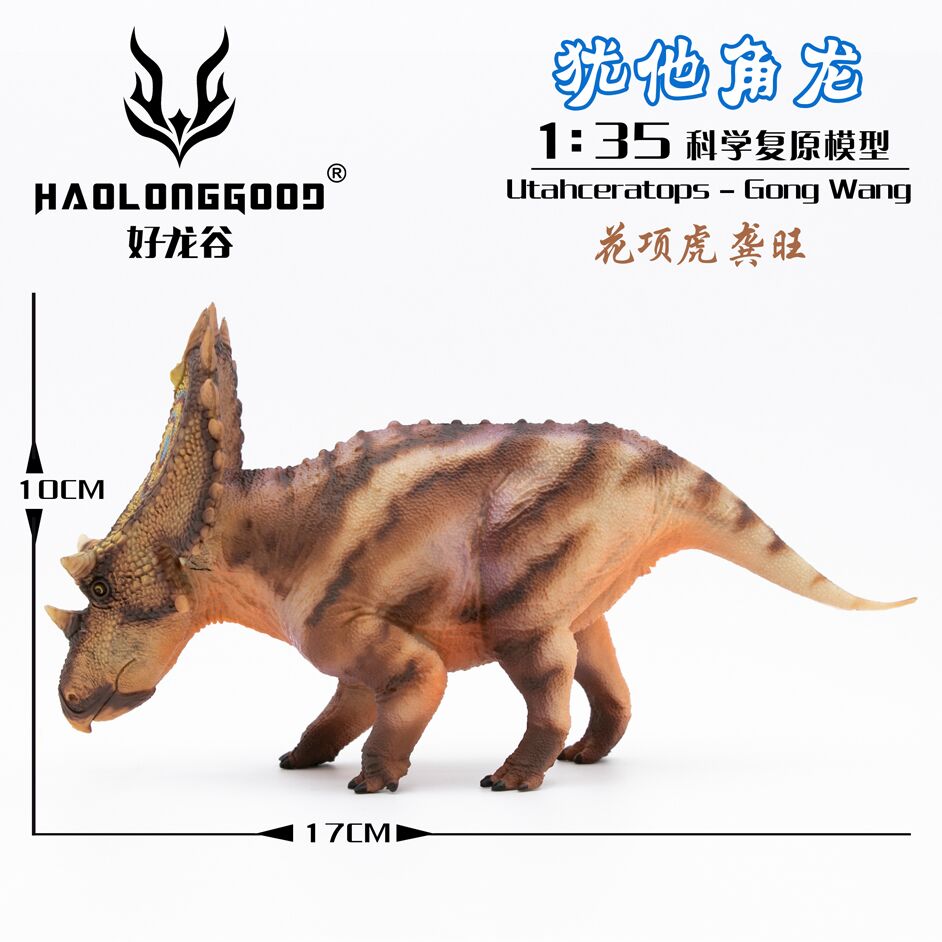 Haolonggood Utahceratops (Gong Wang) the brown Utahceratops dinosaur model. A fantastic dinosaur model by Haolonggood. Everything Dinosaur supplies the Haolonggood Utahceratops (Gong Wang) model with a Utahceratops fact sheet.