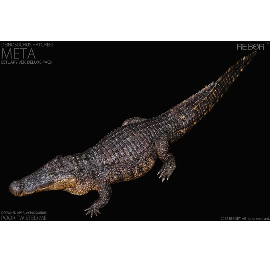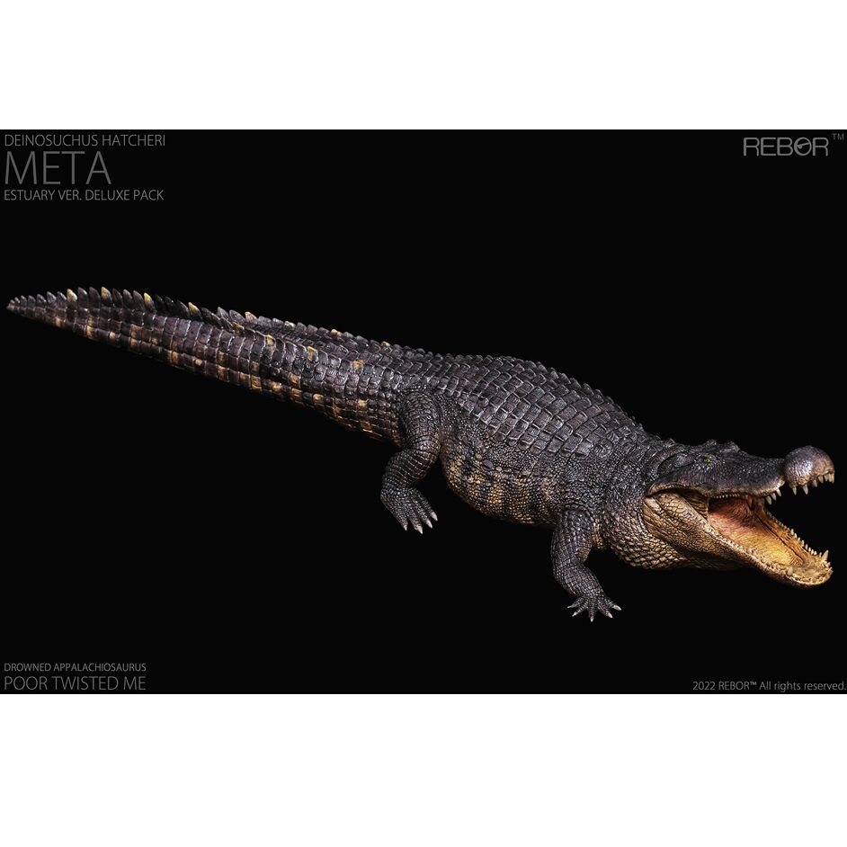 The Rebor adult Deinosuchus estuary colour variant. The Rebor 1:35 Adult Deinosuchus hatcheri Museum Class Replica Deluxe Pack Meta estuary version. A fantastic Rebor Deinosuchus supplied complete with an Everything Dinosaur Deinosuchus fact sheet.