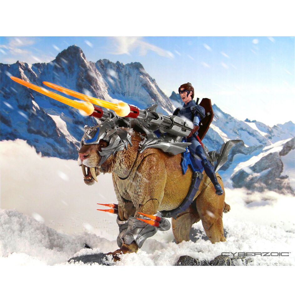 The Sabre Tooth Tiger Box Set Exclusive featuring Smilodon, armour and action figure Helina. A special edition, box set with unique colouration. Articulated Smilodon figure in 1:12 scale.